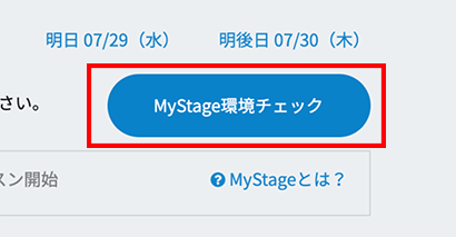 レッスン受講前に「MyStage環境チェック」から環境チェックの確認をしてください。