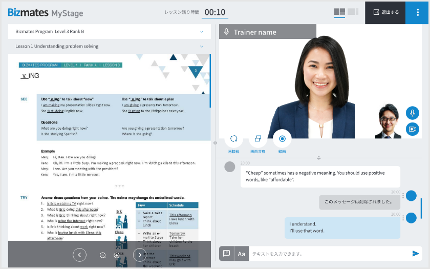 会員ページ「My Bizmates」にログインし、無料体験レッスンを受講したい日時を選んでください。