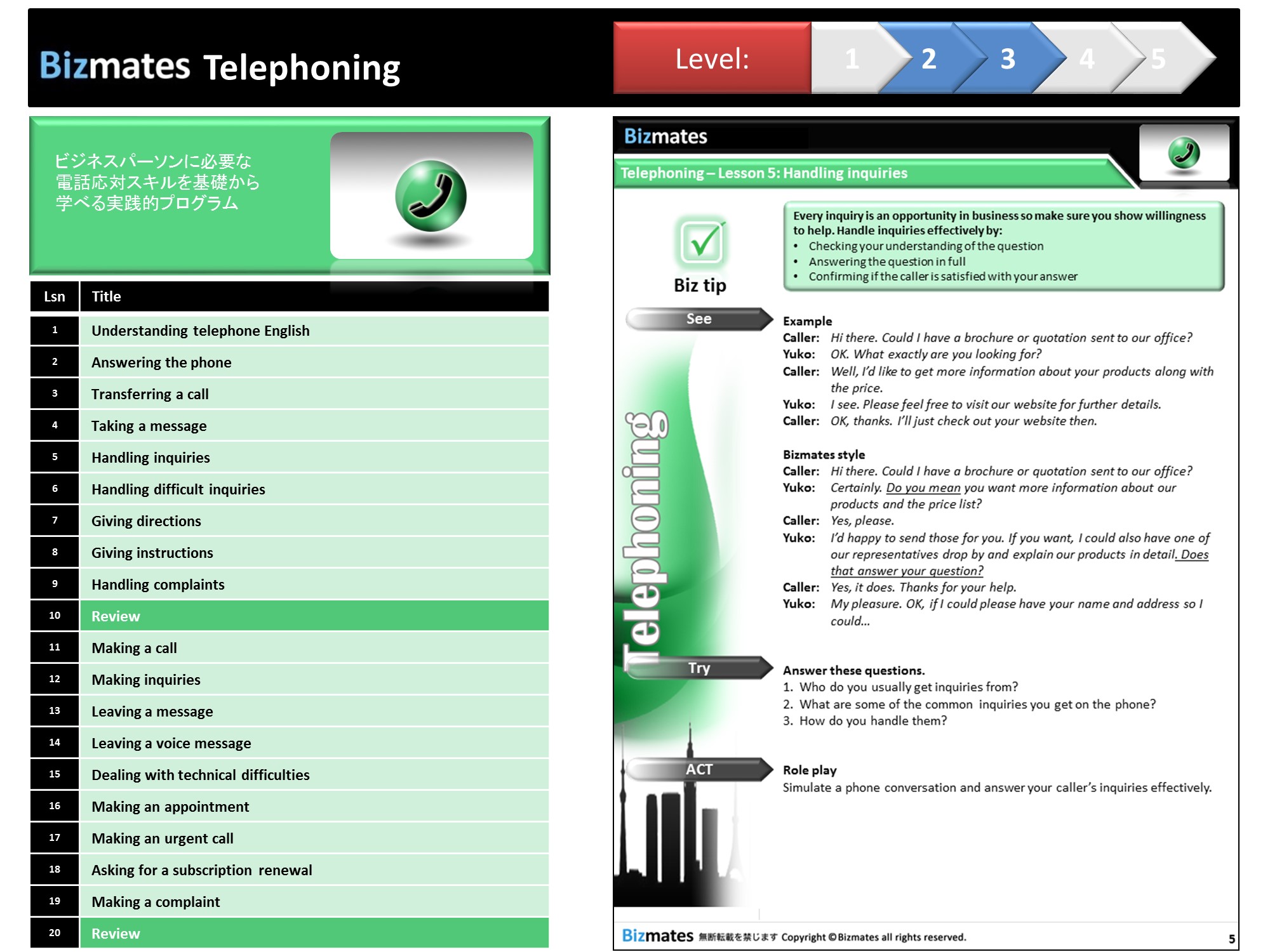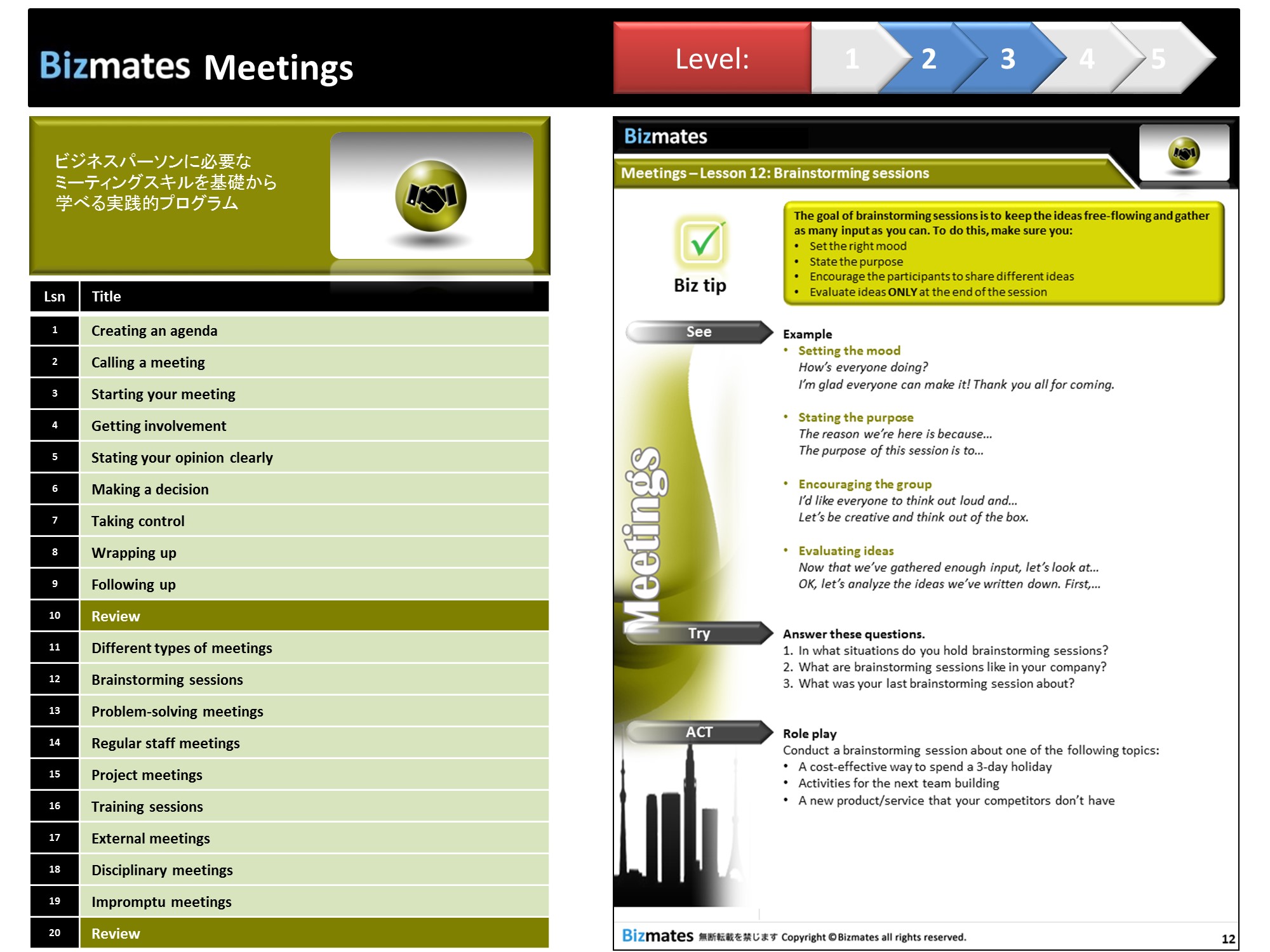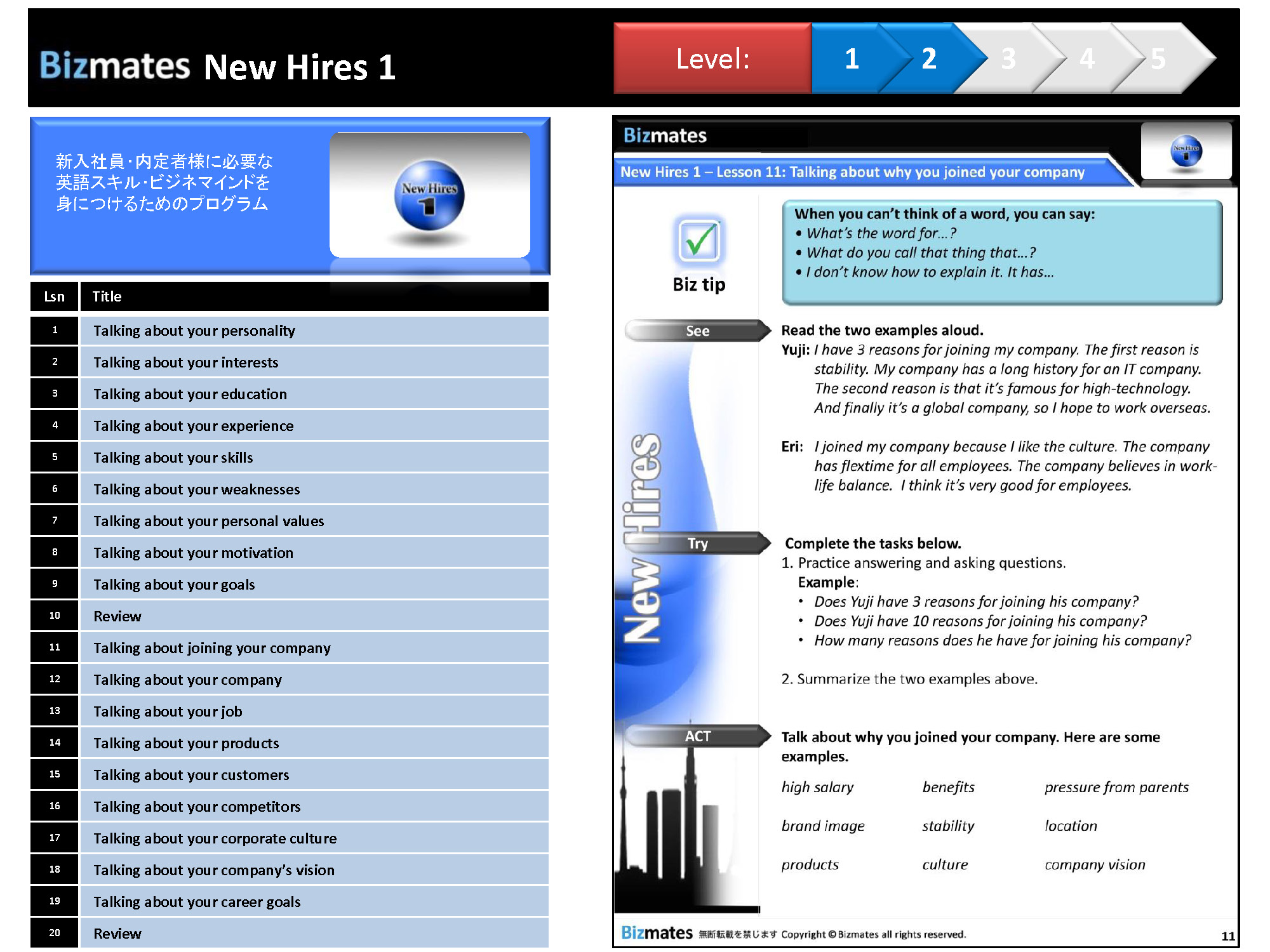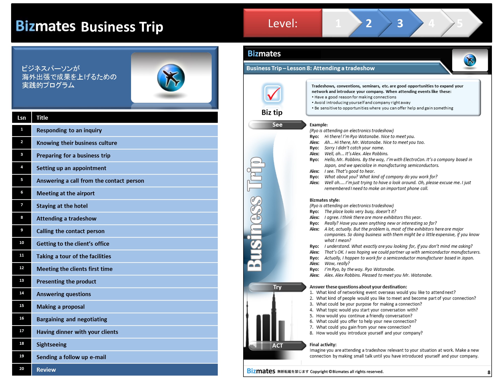 すぐに仕事で使える英語を学びます。※無料体験レッスンで認定されたレベルの範囲で選ぶことができます