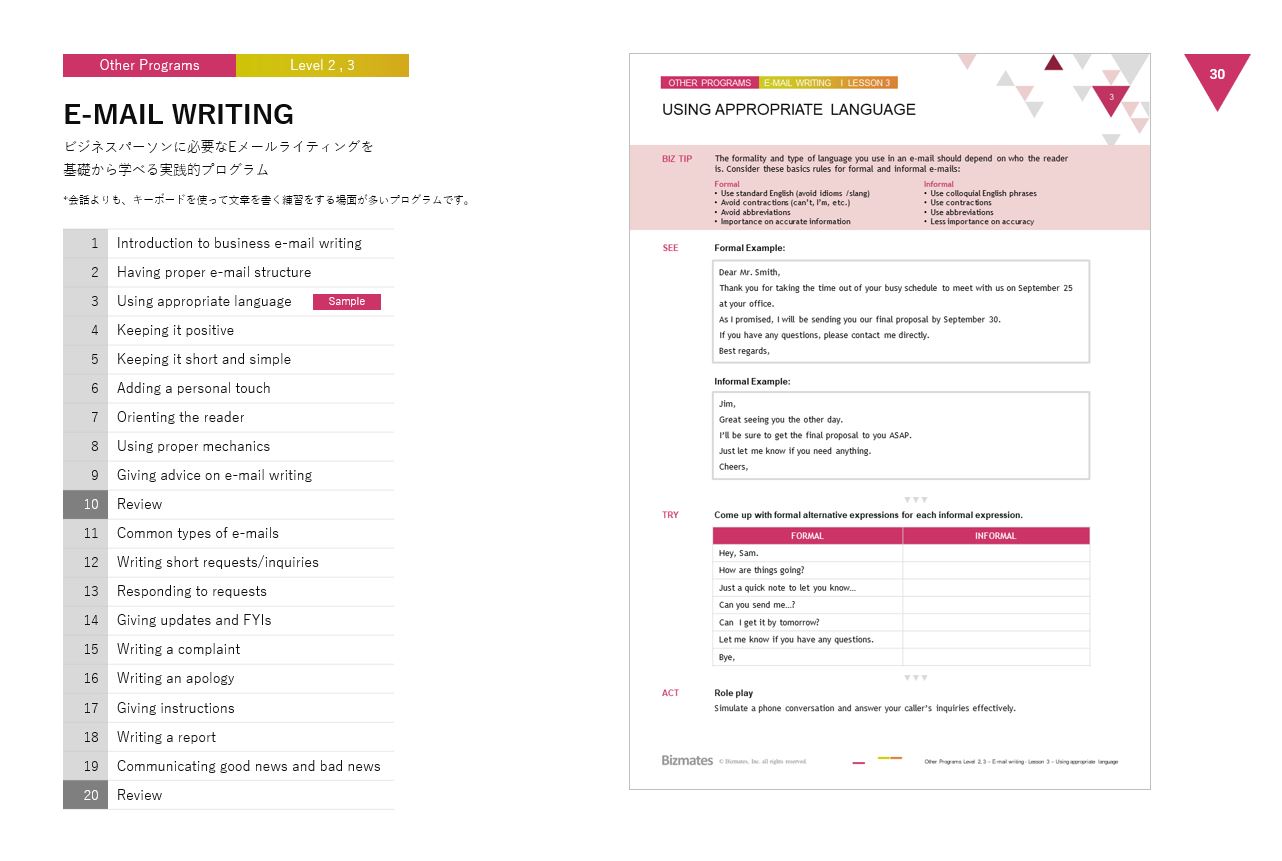中学英語で学んだ文法を復習し、ビジネス英会話で必要となるベース知識を身につけます。