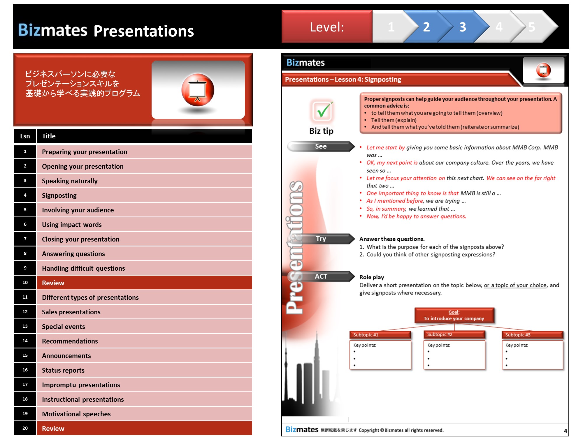 4つのレッスンタイプ30段階のレベル別レッスンや