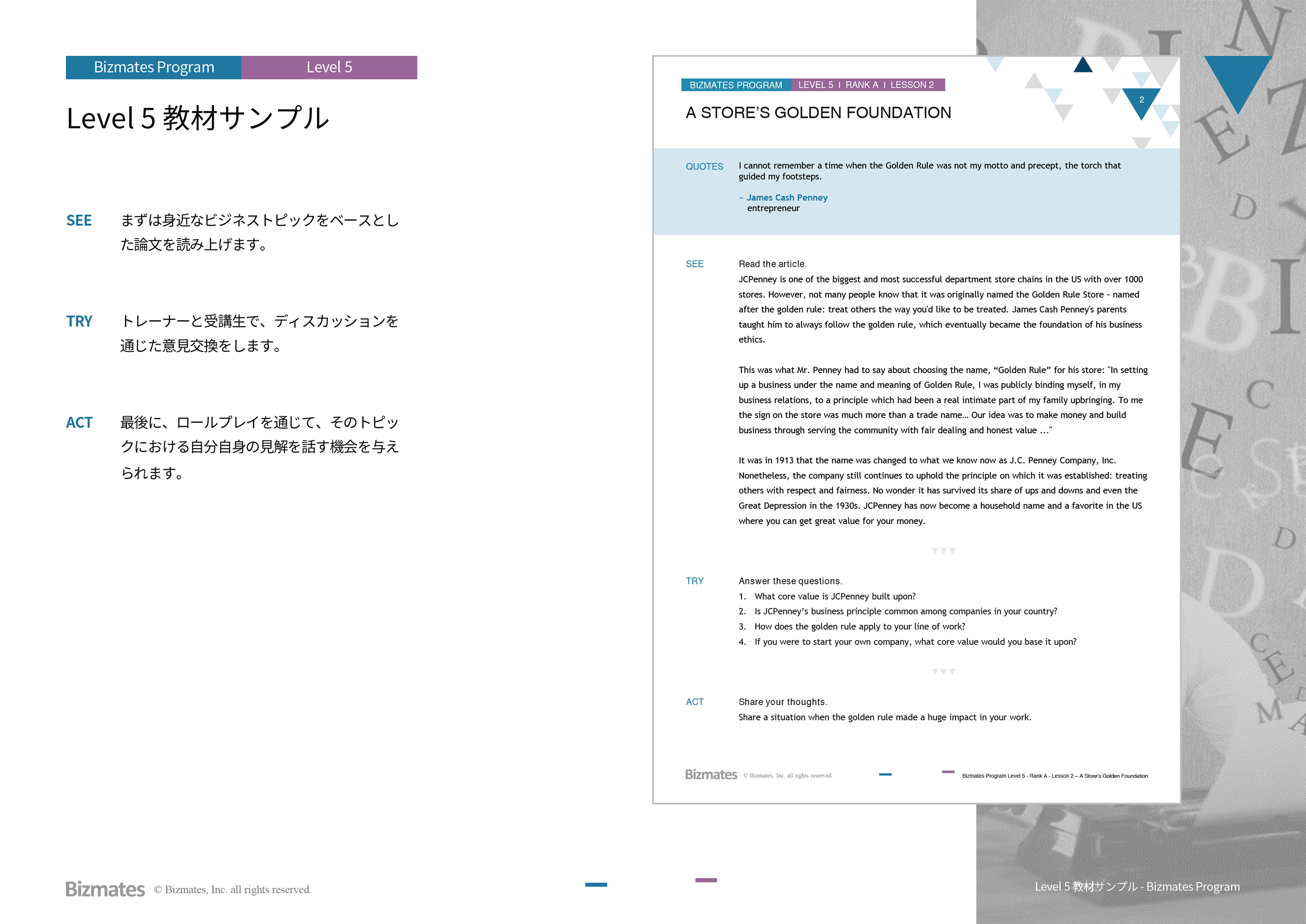 着実にレベルアップBizmatesのプログラムは定期的・継続的なフィードバックを通じて