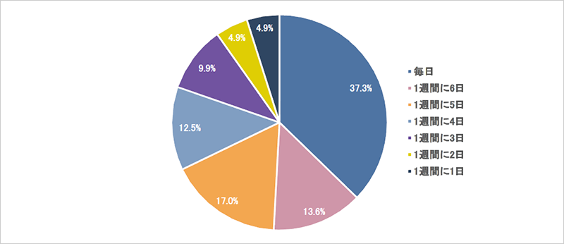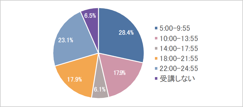 - 毎日受講する人が37.3%。週に6日受講する人が13.6%、週に5日受講する人は17.0%に。受講頻度が高い曜日は月曜、水曜、火曜の順で週前半に高い傾向がみられた。