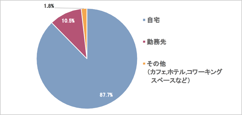 9割以上の受講生が自宅で受講。勤務先での受講は2割弱。