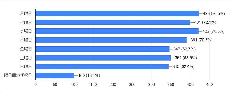【受講頻度の高い曜日】(n=553 複数回答)