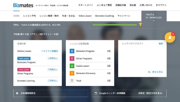 Bizmatesオリジナルの「5つのステップ」でレッスンを行います。このレッスンフローをベースとすることで、