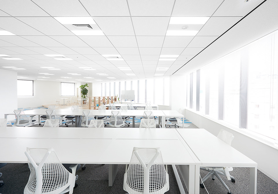 - 開放的なワークスペースは、活発なコミュニケーションや新しいアイデアを生み出します。緑に囲まれ、疲れにくく機能性の高いイスに座り、リラックス状態の頭で働く環境があってこそ、業界最先端のサービスが次々と生まれてきます。