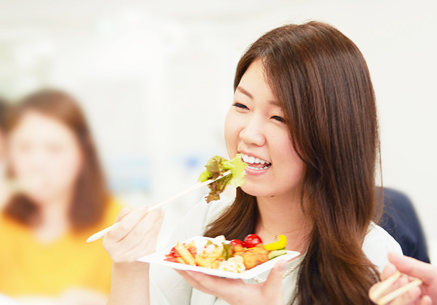 - 毎月社内で行っているランチパーティーでは、ピザ、サンドイッチ、オードブル等、多彩な食事を楽しめます。