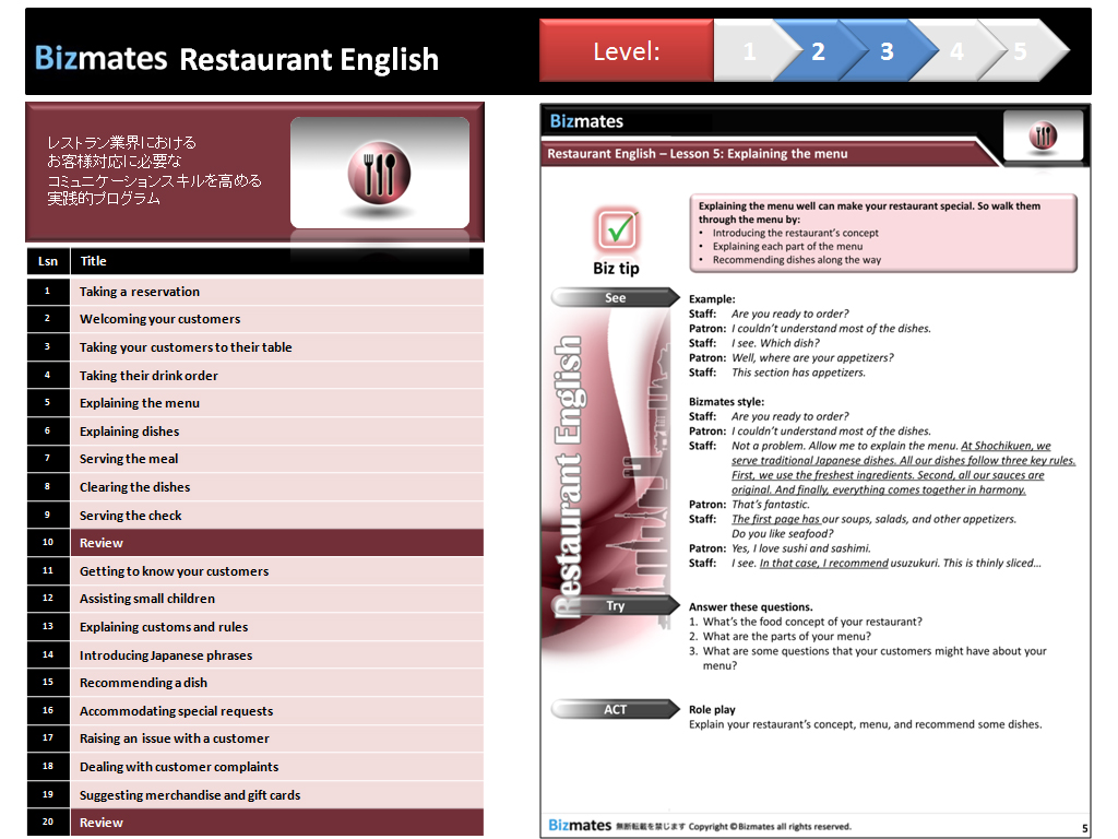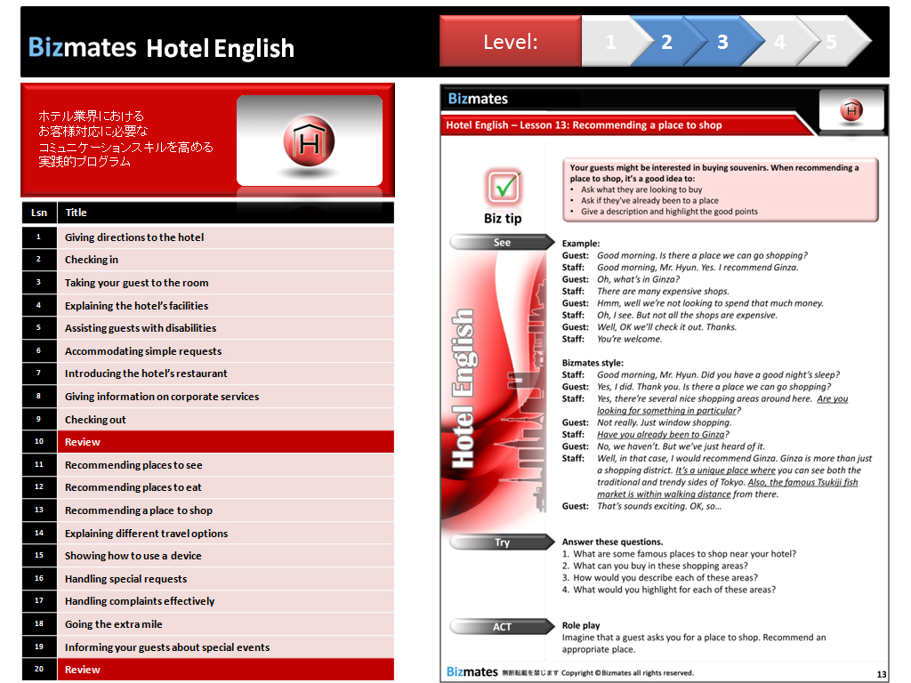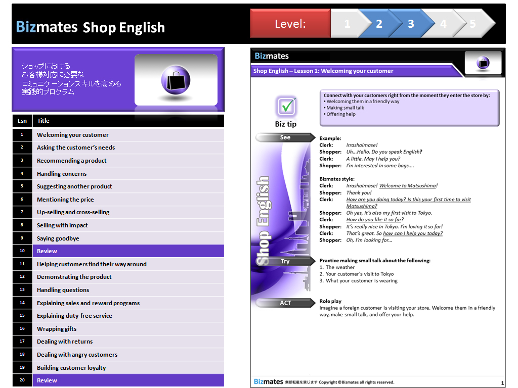 すぐに仕事で使える英語を学びます。※無料体験レッスンで認定されたレベルの範囲で選ぶことができます