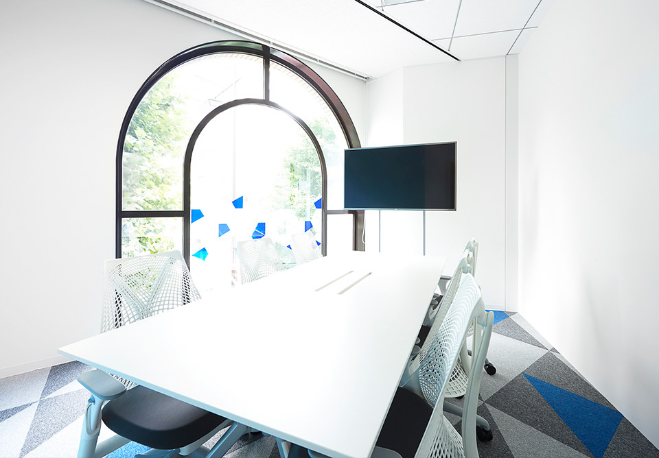 - 大きな窓から明るい日がさしこむ中、ゆったりとした空間で行うミーティングは、自然と活発な議論を呼び込みます。