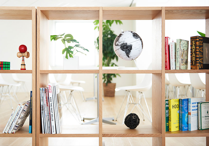 - 洗練されたデザイン空間の中に、ちょっとした遊び心を加え、機能性と快適性を追求しました。皆がいきいきと、笑顔で働ける環境がビズメイツには備わっています。